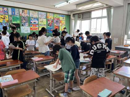 4年生の外国語活動「I like Mondays.」では、クラスの友達や保護者の方々との交流を楽しみながら、曜日を英語で言えるように頑張っていました。