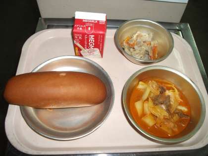 ■ 今日の献立 ■  ・黒糖コッペパン   ・牛乳   ・ボルシチ