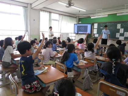 今日の外国語活動では、1〜20までの数字の言い方について学習しました。日本語との言い方の違いに気付き、楽しそうに活動していました。