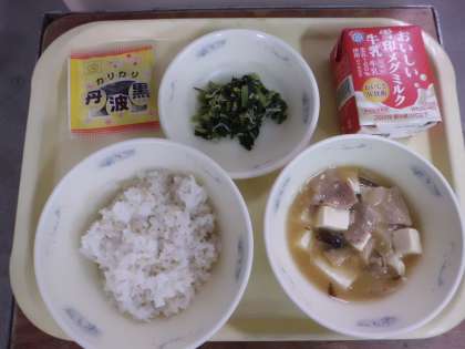 豚肉と椎茸の旨味で豆腐を煮て片栗でとじました。