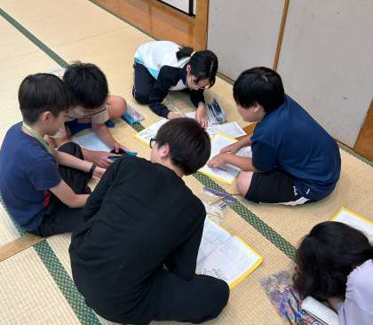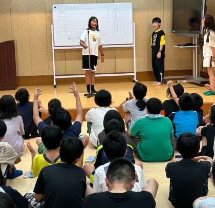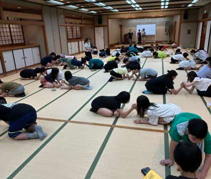 お風呂の後はレクリエーションで盛り上がりました。腕相撲大会やジェスチャーゲーム、ダンスや劇で楽しい思い出ができたようです。レクリエーション活動は、大盛況でした!