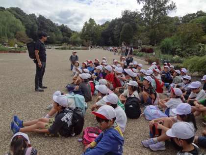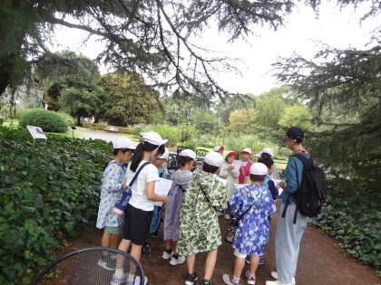 京都府立植物園へ校外学習に行ってきました。一時は雨も降っていましたが、雨間をぬって、クイズラリーや園内の散策を行いました。