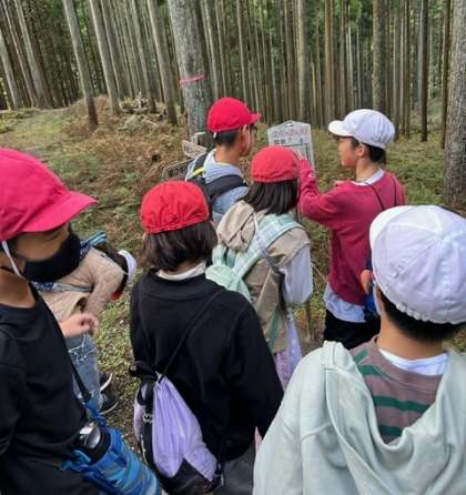 子どもたちは自然の中を散策しながら、オリエンテーリングを楽しんでいます。