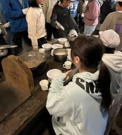 おいしく食べた後は、みんなで協力して後片付けをしました。山の家の所員さんに、洗い方を教えてもらいながら丁寧に食器やお鍋をピカピカにしています。とても手際が良いです。