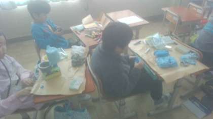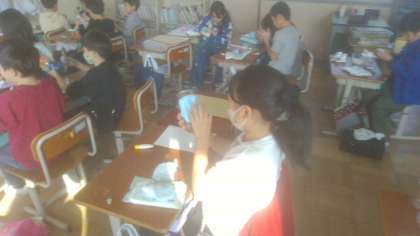 3年生の図画工作科では、「空き容器のへんしん」に取り組んでいます。子どもたちは空き容器を使って、生活で役立つものを考え楽しそうに作品づくりをしています。紙粘土に絵の具を混ぜたり、空き容器の形や大きさを工夫して組み合わせたりしています。どんな作品が完成するのかとても楽しみです