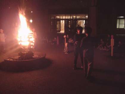 子どもたちが楽しみしていたキャンプファイヤー。みんなでゲームで楽しみ、踊って楽しみ、歌って楽しみ、あっという間の一時間でした。子どもたちは、二日間の活動で大切にしてきた「協力」「挑戦」の大切さをファイヤーを見ながら心に焼き付けたことでしょう。この後、一日のふりかえりをして就寝となります。明日は最終日。これまでの学びを生かして「仲間・感謝」をテーマに活動を進めます。本日のホームページの更新は以上となります。