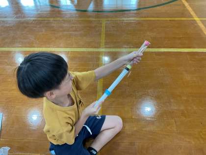 今週は空気でっぽうを使って実験をしました。つつに玉をつめて、おし棒で位置を調整したり玉の数を変えたりするとどんな違いがあるのか、どうして玉が飛んだのかなど、子どもたちの中で新しい気づきや疑問が出てきました。