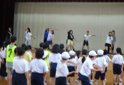 準備体操係は、夏休み明けから体操を考え、全校児童にその内容を伝えました!