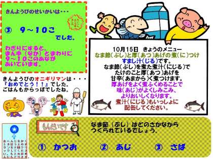 毎年、4月に実施しているなま節の煮つけを厚あげとたけのこで煮つけました。