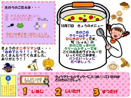◆ 今日の献立 ◆ ・チーズコッペパン ・牛乳 ・きのこのクリームシチュー
