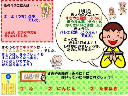 ◆ 今日の献立 ◆ ・麦ごはん ・牛乳 ・すきやき風煮