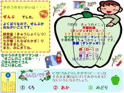 ◆ 今日の献立 ◆ ・玄米ごはん ・牛乳 ・チンジャオロースー