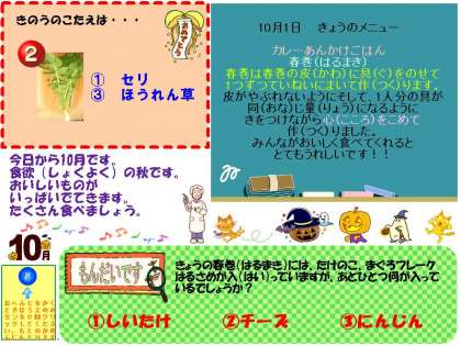 10月1日 給食室より