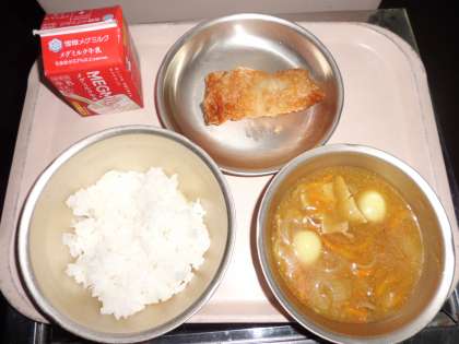 ◆ 今日の献立 ◆ ・カレーあんかけごはん ・牛乳 ・春巻