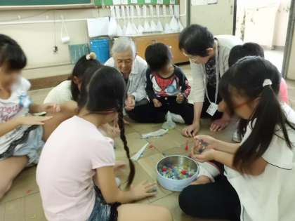 初めて体験する遊びにも,婦人会のみなさん