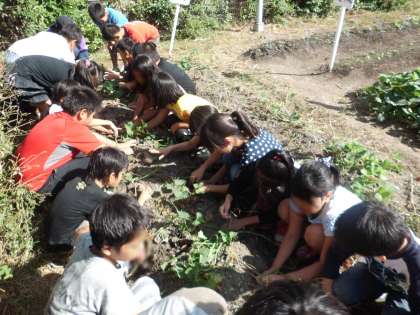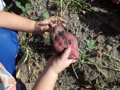 5月に植えたさつまいもが,ついに収穫の時期を迎えました。