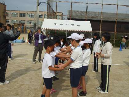 安井小学校に集まって,合同運動会をしました。