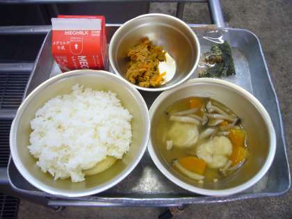 今日は、『防災とボランティアの日』の行事献立として、すいとんが出ました。