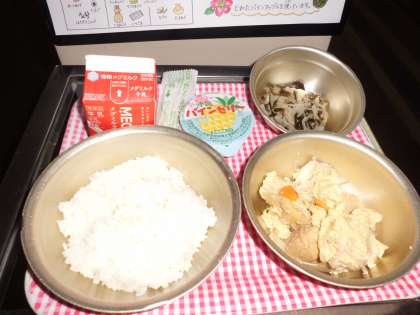 ◆ 今日の献立 ◆ ・ごはん ・牛乳 ・厚あげのチャンプル ・クーブイリチー ・パインゼリー