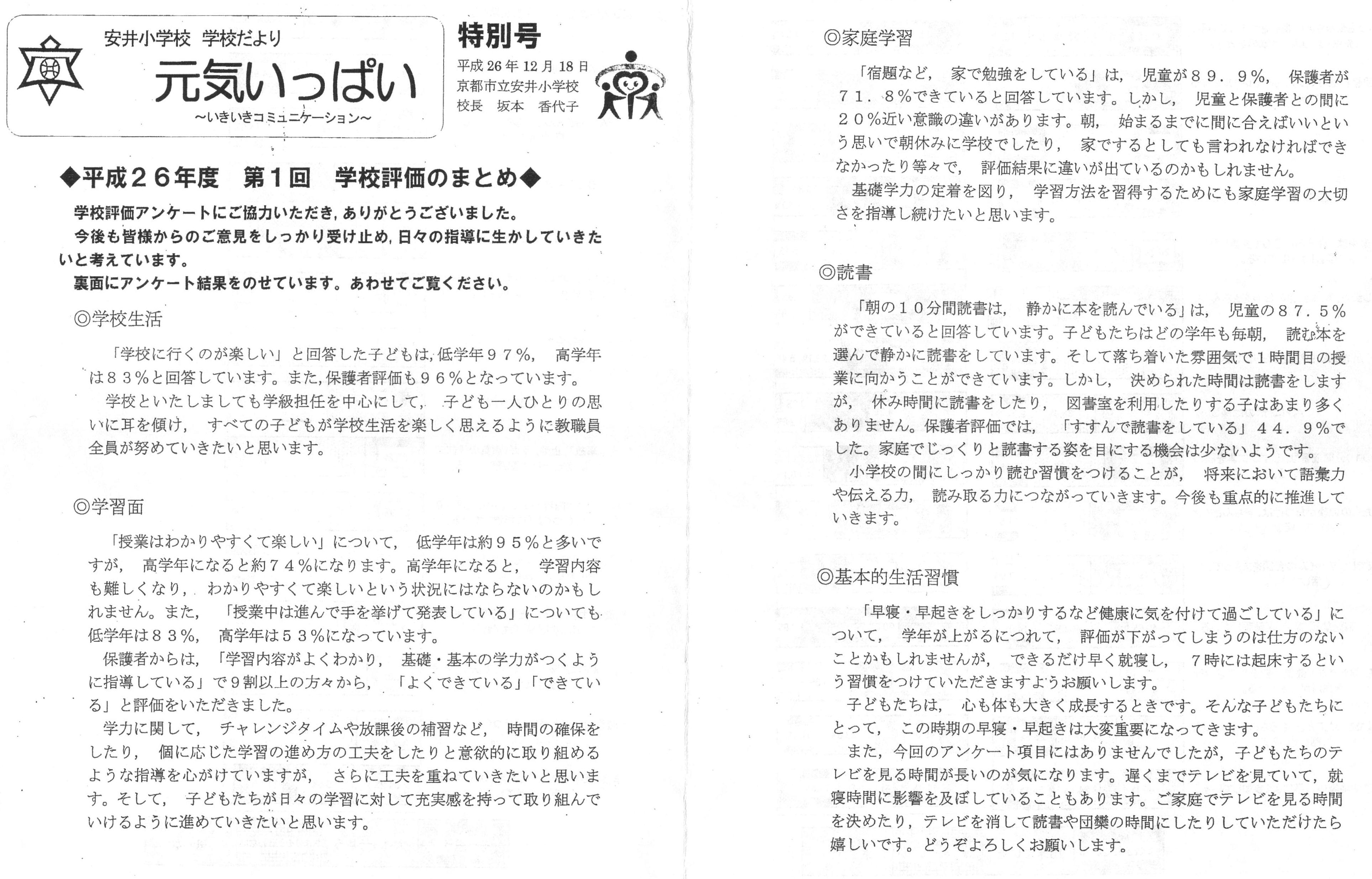 平成26年度 後期学校評価アンケート結果1