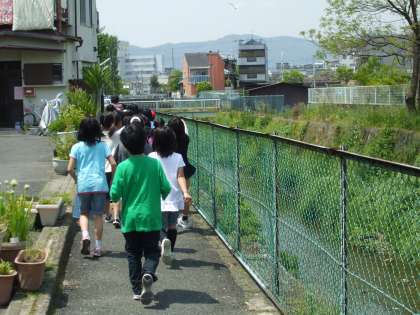 社会科で,校区探検に行きました。今までよく歩いて知っている所でも,