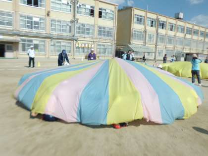 右京南支部の10校が集まった合同運動会梅津小学校でありました。安井の3組の子どもたちもはりきって運動会に参加し,50m走や100m走,玉入れ,5分間走,バルーンなどの種目に出場しました。「一番になったよ!」「たくさん玉が入ったよ!」「5分間走がんばったよ!」など,自分の力を充分に発揮し,満足できた運動会になったようです。梅津小学校の友達が優しく声をかけてくれたり,名前を呼んで応援してくれたりしたのでとても喜んでいました。