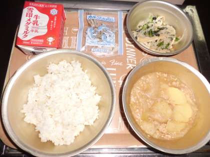 ◆ 今日の献立 ◆  ・じゃがいものそぼろ煮   ・切干大根の煮つけ   ・じゃこ
