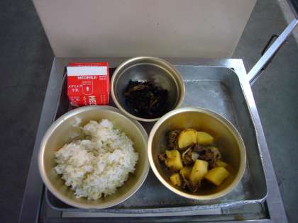 ★ 今日の献立 ★ ・むぎごはん ・牛乳 ・肉じゃが ・ひじきの煮つけ