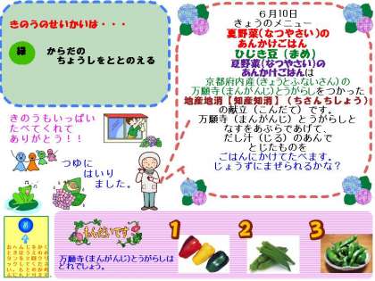 ◆ 今日の献立 ◆ ・胚芽米ごはん ・牛乳 ・夏野菜のあんかけごはん(具) ・ひじき豆