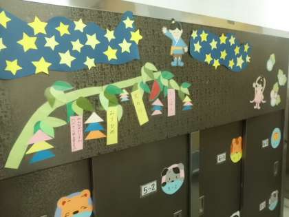 7月7日は七夕の日です。それにちなんで今月も調理員さんが素敵な掲示をしてくださいました!短冊には調理員さんの願い事「おいしい給食を作れますように」が書かれていました。ありがとうございます!