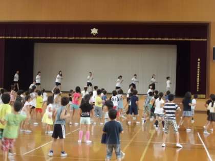 最初は照れながら体を動かしていたのですが徐々に慣れてきて最後の方は楽しんで体操をしていました。