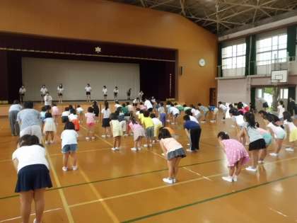今日は,中間休みは高学年,昼休みは全校自由参加のリズム体操の練習を行いました。