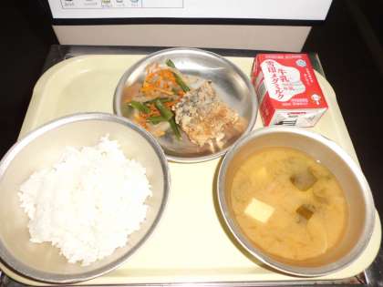 ◆ 今日の献立 ◆ ・ごはん ・牛乳 ・さばのたつたあげ ・野菜のきんぴら ・みそ汁