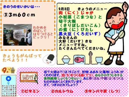 9月8日 給食室より