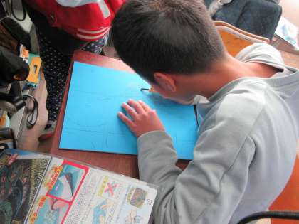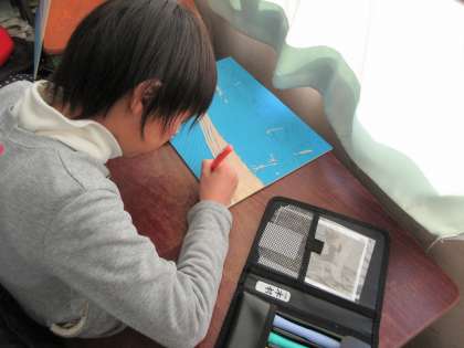 彫刻刀を思い通りに使うことに苦労していますが,自分の思い通りの線が彫れるように細心の注意を払いながらがんばっています。