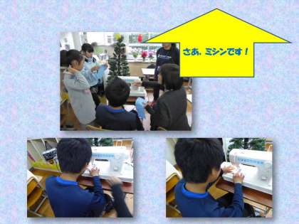 初めての「ミシン」ですが,とても真剣な中にも 楽しく学習しています。