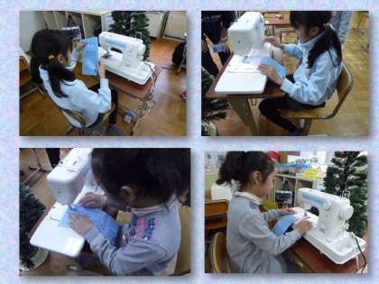 5年生が「ミシン」を使って 「エプロン」を縫います。