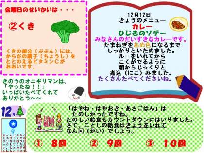 12月12日 給食室より