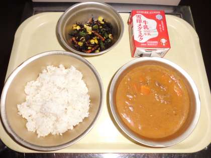 ◆ 今日の献立 ◆ ・麦ごはん ・牛乳 ・カレー ・ひじきのソテー