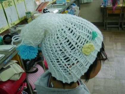 最初は難しそうでしたが,慣れてくるとどんどん編めるようになりました。素敵な毛糸の帽子を編み上げる子どももいました。