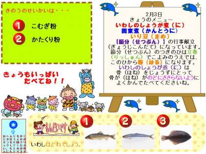 「節分」の行事献立です。鰯を上手に食べていました。
