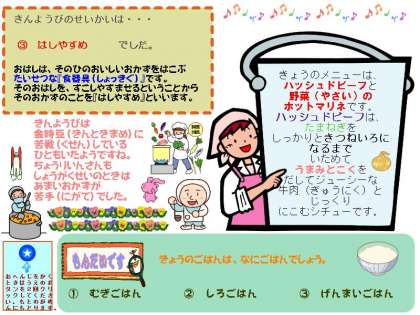 ■ 今日の献立 ■ ・麦ご飯 ・牛乳 ・ハッシュドビーフ ・野菜のホットマリネ