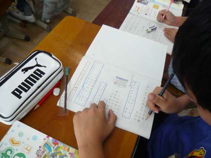 子どもたちは,公式を使えばいいのだとすらすら解き始めました。