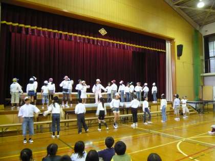 いつもとっても元気な3組さんなのですが,みんなが見ている・舞台の上ということで緊張が爆発してしまったみたいです。でも一生懸命さは伝わってきましたよ。