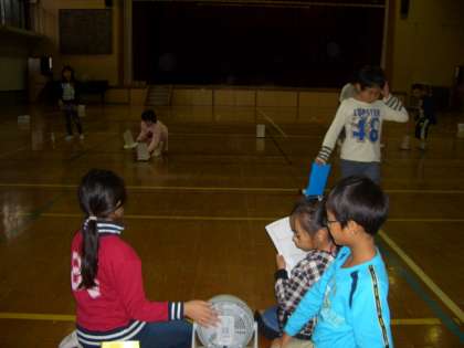 受ける風の強さによって車の動く様子がどのようにちがうのかを調べるため,実験を行いました。
