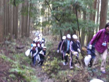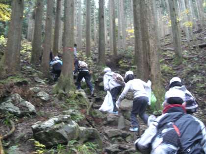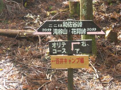 井ノ口山登山の予行演習という形で取り組んだ滝谷山登山でしたが,少し甘く見ていたようです。山の家の敷地を出た辺りから,杉林の中のやや上りの道を歩きました。しばらくすると,かなりの急斜面。15分ほど登ると和佐谷峠。ここまでは,かなり苦しい道でした。