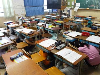 今日は地震を想定しての避難訓練がありました。地震はいつおこるか分かりません。起こったときに自分で考えて自分自身の身を守れるように話し合いました。