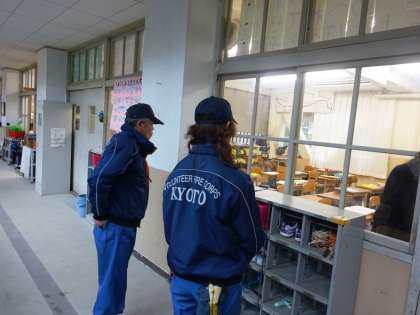 子ども達は,放送をしっかり聞いて,真剣に訓練に取り組むことができました。西院第一・第二それぞれの消防分団の方々にも見回っていただき,避難の方法のアドバイスもいただきました。学校長からは,23年前の阪神淡路大震災の話もあり,防災について考える日となりました。