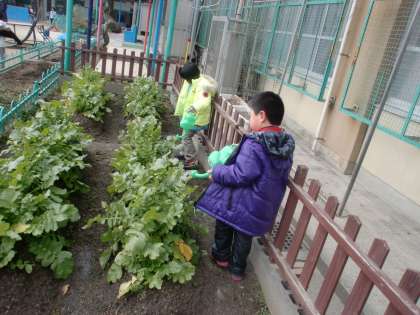 初(はつ)朝マラソン,体は重いけどがんばって走っています。初(はつ)水やり,ダイコンが大きく太くなってきました。家へのお土産だけでなく,学校でダイコンを炊いて,ふるまいダイコンをしてみようかなあ…なんて初(はつ)思いをした寒い朝でした。