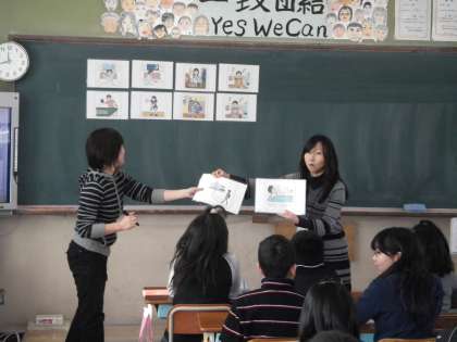 学校のトップページでもお知らせしていますが,外国語活動の全国大会がいよいよ今週末に行われます。4月のはじめには少し恥ずかしがりながら活動する子どもたちでしたが,最近では楽しく活動できるようになってきました。今日は,キーワードゲームやおはじきゲームなどを行いましたが,英語で話されるルールをよく聞き取り,すばやく反応していく姿には,とても驚かされました。